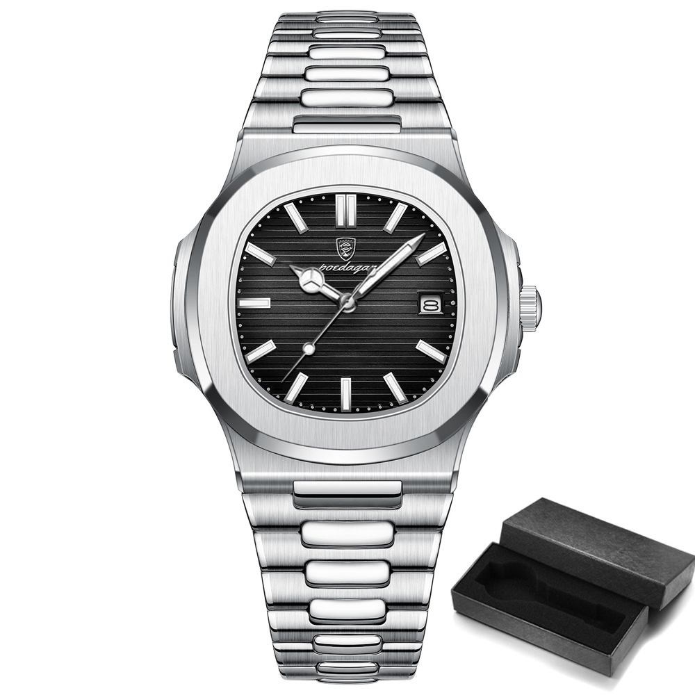 Com movimento de quartzo de alta precisão, caixa de aço inoxidável resistente e funcionalidades avançadas, o Quartzo Elite Poedagar é o parceiro perfeito para todas as suas ocasiões, combinando estilo e funcionalidade de forma impecável.